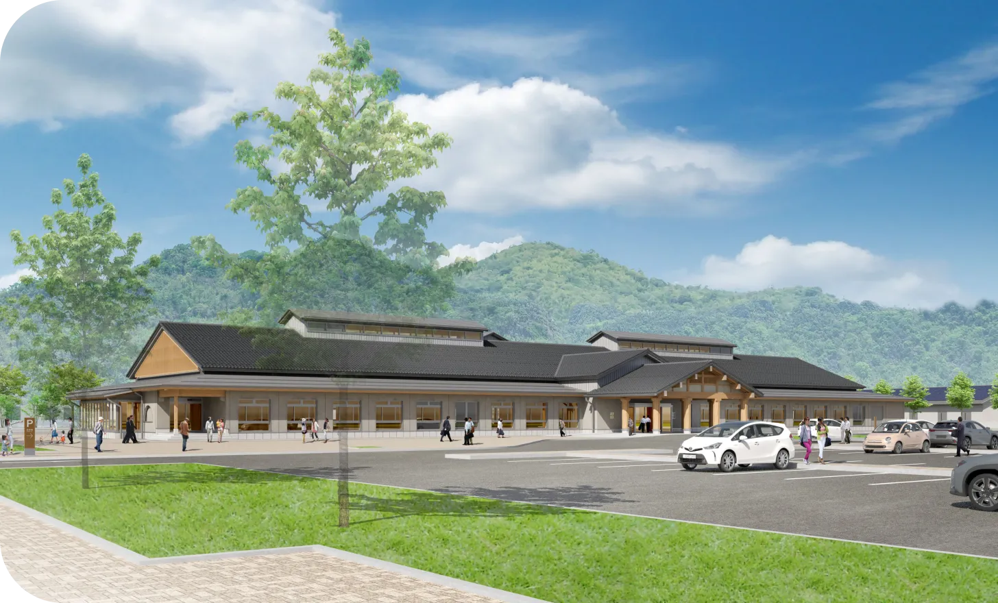 新庁舎・複合施設は、福井県池田町がすすめる「木望の森100年プロジェクト」や「脱炭素むらづくり」の取り組みを地域内外に広げ、地方創生を実現するショールームとして整備されます。