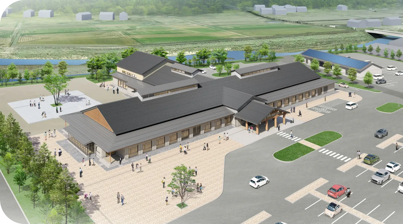 町民や町外の人々が集まり、多様な交流や活動が生まれ、町内に点在する農村文化資源を活かし周遊型観光を活発化させる、活気あるまちづくりの中心施設を目指します。