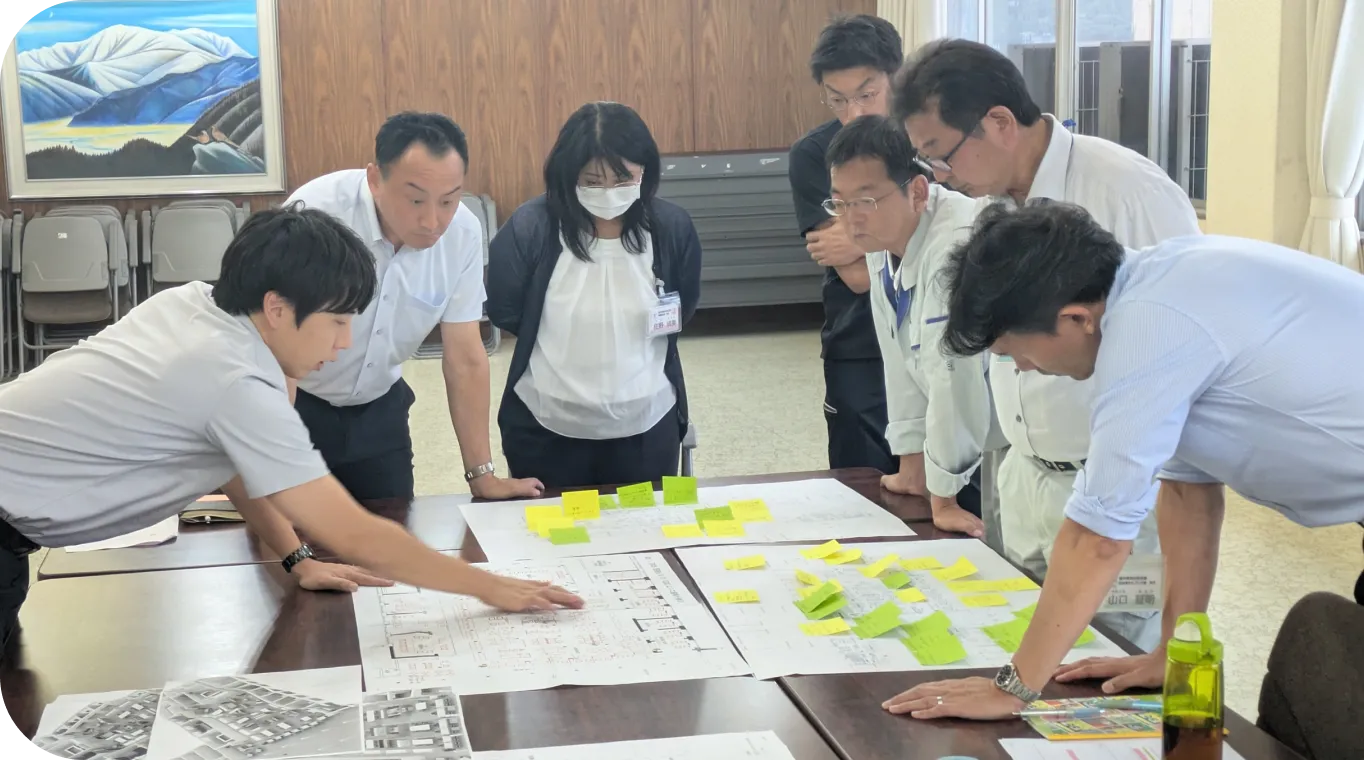 町民の利便性向上役場・図書公民館の機能をひとつにまとめ、行政窓口をワンフロアに集約。総合保健福祉施設「ほっとプラザ」と隣り合うことで、暮らしの利便性が高まります。各施設や事業が連携し、町民サービスの向上を図ります。