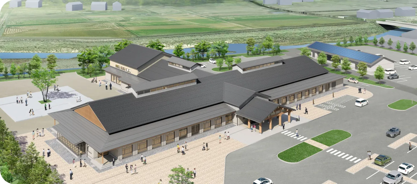 地域の交流・学習拠点町役場に加え、農山村文化展示閲覧、多目的スペースやホールなど、子どもから高齢者まで誰もが利用できる場を整えます。蔵書・資料を活用したまちづくり学習や地域活動、他地域との交流イベントなど、多彩な催しが開催可能。人と人がつながり、世代を超えて交流できる複合施設です。