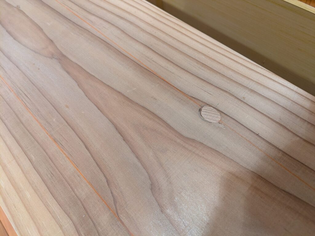 ビスを打ち込んだあとの穴には木栓を詰めています。見た目への配慮と、火災などが起きた場合、この穴から熱が柱内に入るのを防ぐためのものです。