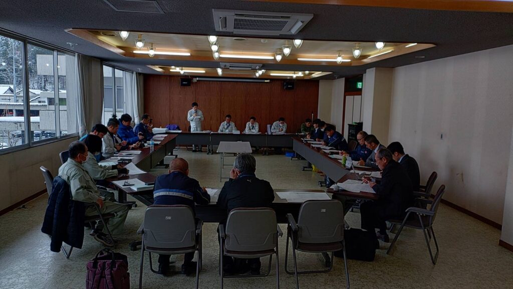 池田町の現役場庁舎には行政事務で使用する通信機器や防災行政無線などの防災関連設備が多数設置されています。建物内部だけでなく屋上や外構に設置されているものもあり、そのような機器を新庁舎に移設して引き続き使用する方向で配置場所などを検討してきました。今後、各機器をどのように設置するか、配線をどこに通すか、建物外部や外部から建物内に配線を通すための配管やスペースが確保されているかといったより具体的なことを確認するための打ち合わせが行われました。