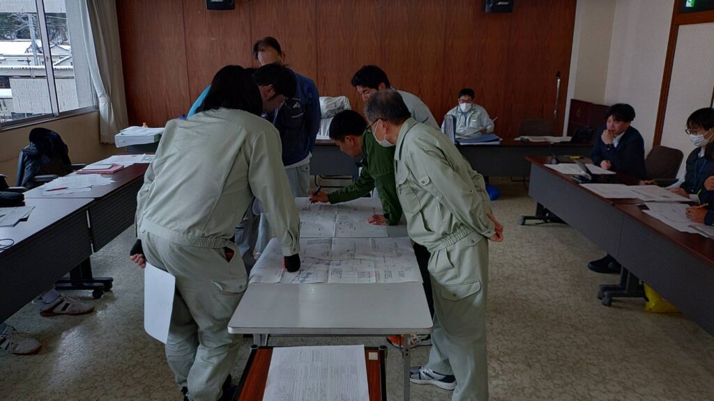 現役場庁舎の設置機器が多いことから関係者数も多く確認することが多岐にわたります。また今後機器の移設や配線等を設置する際に関係者間での調整も必要となり、はたしてうまくいくのかどうか正直心配なところもありますが、関係者のみなさんと協力しながら一つ一つ地道に片づけていく以外に方法はないなと感じたところです。